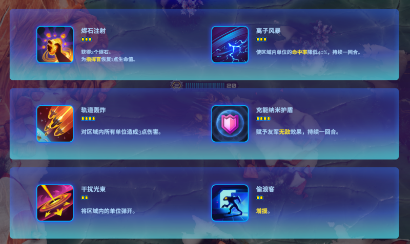 因为游戏基本所有棋子的特殊技能都是需要支付烬石作为费用的,而想要胜利最重要的手段就是规划烬石的使用,也就是俗称的费用。在这样的情况下最容易和对手拉开距离的东西就是辅助技能,因为辅助技能是不需要消耗烬石的,只需要等技能的CD就行,免费的技能也都能算成等价值的烬石模型。比如我们选择了埃克斯特利尔作为我们的指挥官,然后进入游戏。